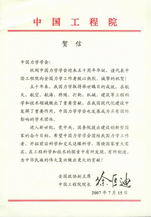 全国政协副主席、中国工程院院长徐匡迪先生发贺信祝贺金宝搏官方app下载指南成立50周年