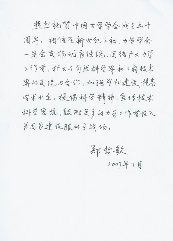 金宝搏官方app下载指南第三届理事长郑哲敏院士发贺信祝贺金宝搏官方app下载指南成立50周年
