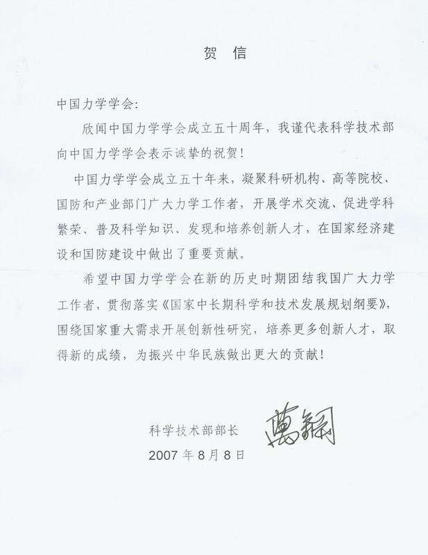 科学技术部部长万钢发贺信祝贺金宝搏官方app下载指南成立50周年