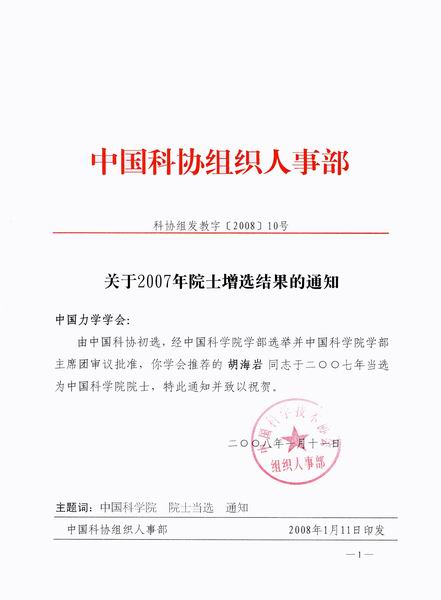 2007年,金宝搏官方app下载指南通过中国科协一共提名中国科学院院士候选人4人,中国工程院院士候选人1人。