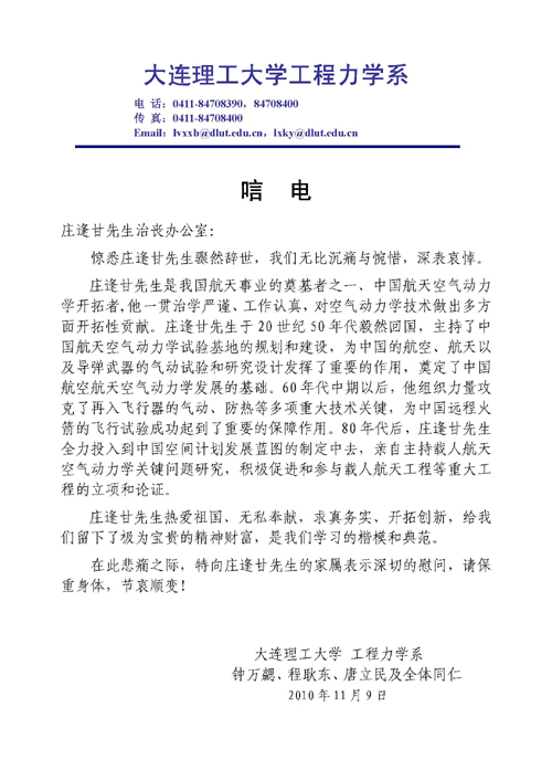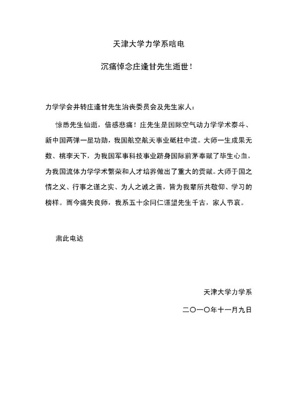 各大院校悼念庄逢甘先生唁电