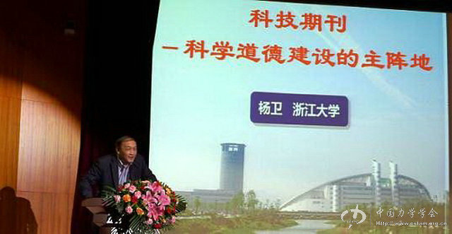 《力学快报》主编李家春院士和《力学学报》第八任主编杨卫院士在会议上分别作了题为《大力弘扬科学精神、全面提高期刊质量》和《科技期刊——科学道德建设的主阵地》的主题报告。