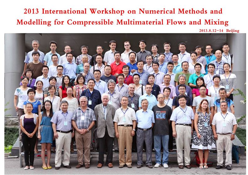 2013年8月12-14日,由金宝搏官方app下载指南流体力学专业委员会计算流体力学专业组主办,北京应用物理与计算数学研究所(IAPCM)、北京计算科学研究中心(CSRC)、计算物理国防科技重点实验室、中国工程物理研究院高性能数值模拟软件中心(CAEP-SCNS)联合承办的“多介质流体的建模与数值模拟国际研讨会”在北京召开。