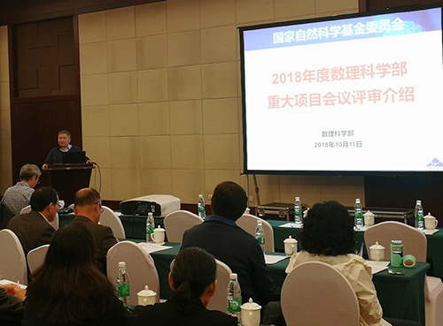 2018年10月11日,国家自然科学基金委员会(简称自然科学基金委)数理科学部在北京召开2018年度重大项目评审会议。数理科学部主任江松院士出席开幕式并讲话。会议开幕式由数理科学部常务副主任董国轩研究员主持。70名评审专家、基金委财务局及数理科学部相关工作人员参加会议。