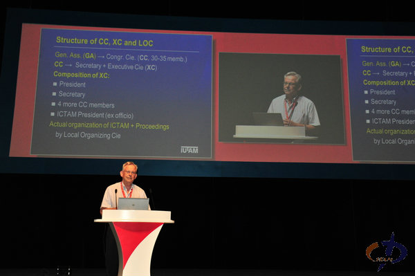 在闭幕式上Van Campen教授作IUTAM大会委员会工作报告