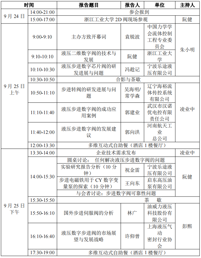 为了更好地推动我国流体动力与机电控制工程领域的前沿技术与产业发展深度融合,为科研学者、工程技术专家与企业家搭建交流合作的平台,拟于2021年9月25日在杭州召开“液压步进数字阀技术研讨会”,有关信息如下: